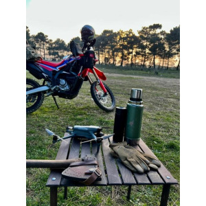 Klasik kamp masalarının aksine, bu masa motosiklet kullanıcılarının ihtiyaçlarına göre optimize edilmiştir. Yerden kazandıran tasarımı ve özel taşıma çantası sayesinde hem şehir içi kısa kaçamaklarda hem de uzun rotalarda büyük konfor sağlar.