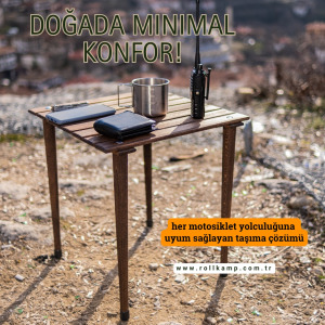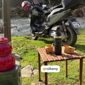 Türkiye'de motosiklet kullanıcıları için özel ölçü ve taşıma özellikleriyle üretilen tek katlanabilir ahşap masa olan Rollkamp 40x40, kamp kültürüne yeni bir soluk getiriyor.